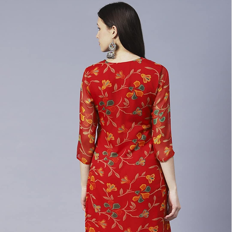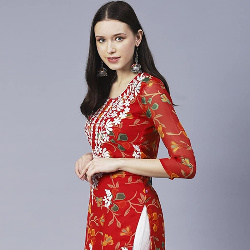 ANNI DESIGNER Women's Printed Georgette Chikankari Embroidered Kurti