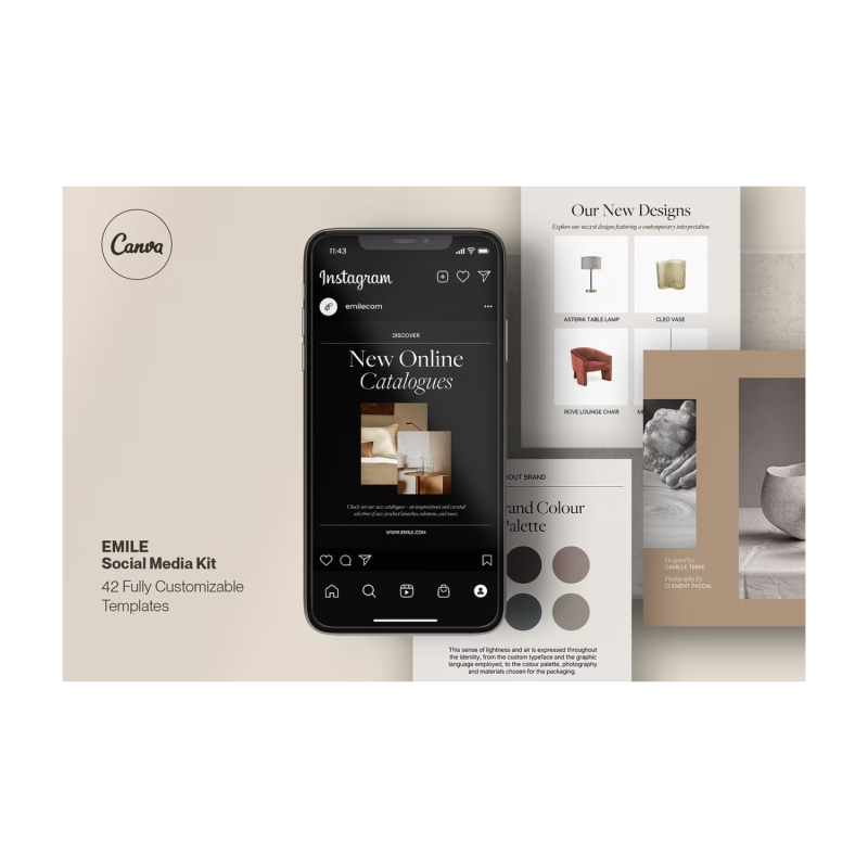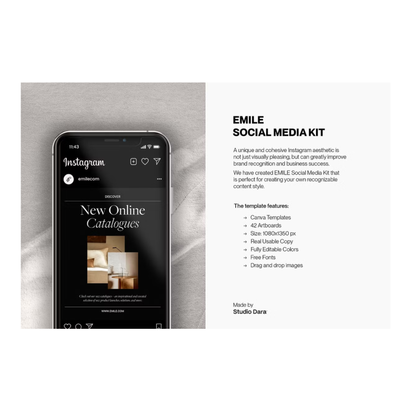 تم إنشاء مجموعة Emile Social Media Kit من Studio Dara في Canva وتتميز بجمالية بسيطة ومثالية للهندسة المعمارية والعلامات التجارية للبيع بالتجزئة والمؤثرين واستوديوهات التصميم. تتضمن الحزمة 42 نموذجا فريدا بدقة 1500 × 1500 بكسل. يتصفح معظم المستخدمين خلاصات Instagram الخاصة بهم على هواتفهم - وحجم الصورة الشخصية في Instagram أساسي للجوال. تم تحسين المنشورات الشخصية لخوارزمية Instagram ويمكن أن تكون ملفتة للنظر للغاية في موجز مليء بالصور المربعة. لقد أنشأنا أنماط منشورات بورتريه مختلفة بحيث يمكنك مشاركة المنتجات والخدمات والأخبار والعروض الترويجية والاتجاهات والاقتباسات والصور النابضة بالحياة ورسائل الحث على اتخاذ إجراء والمزيد لجذب الجمهور المستهدف المناسب. وفر وقتك وأموالك وأنتج عملا عالي الجودة.