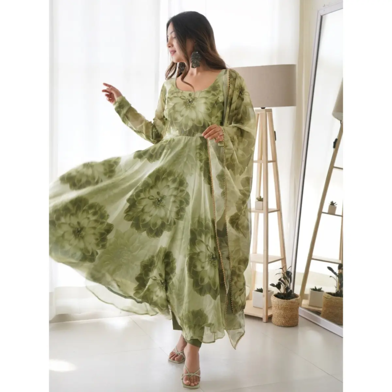 خدمة FASHIONABAL TABBY ORGANZA SILK بطباعة 3D بستان بلون مع أخضر دوباتا