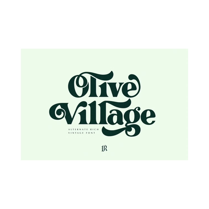 Olive Village هو خط عرض مصمم بشكل أساسي للعناوين والعناوين والنصوص القصيرة الأخرى وهو مناسب تماما للإعلان ولوحة المزاج القديمة والعلامات التجارية والشعارات والتغليف والعناوين والتصميم التحريري والتصميم الحديث والعتيق.