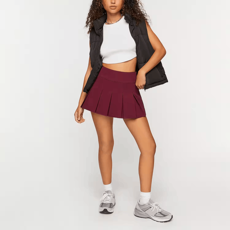 Womens Mid Rise Pleated Skirt