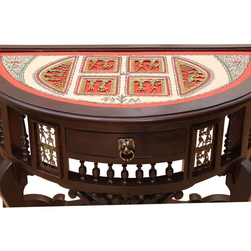 Design Details - Warli art is a traditional folk art form that originated in the Warli tribe of India. Warli art is characterized by its simplistic, minimalistic, and geometric style. The art form predominantly uses two-dimensional figures such as circles, triangles, and squares to represent human beings, animals, trees, and other elements of nature. The central motif is usually a circle representing the sun and the moon. The square shapes often represent houses or community gathering places. The rhythmic patterns and symbols are associated with fertility, harvest, unity, and the connection between humans and nature. The art form serves as a medium to communicate and preserve the tribal culture, customs, and ancestral wisdom of the Warli tribe.