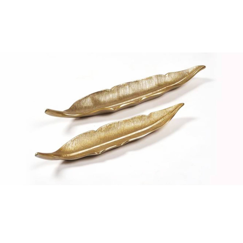 • Name: Antique Feather Decor Dishes -Set of 2 (Gold)