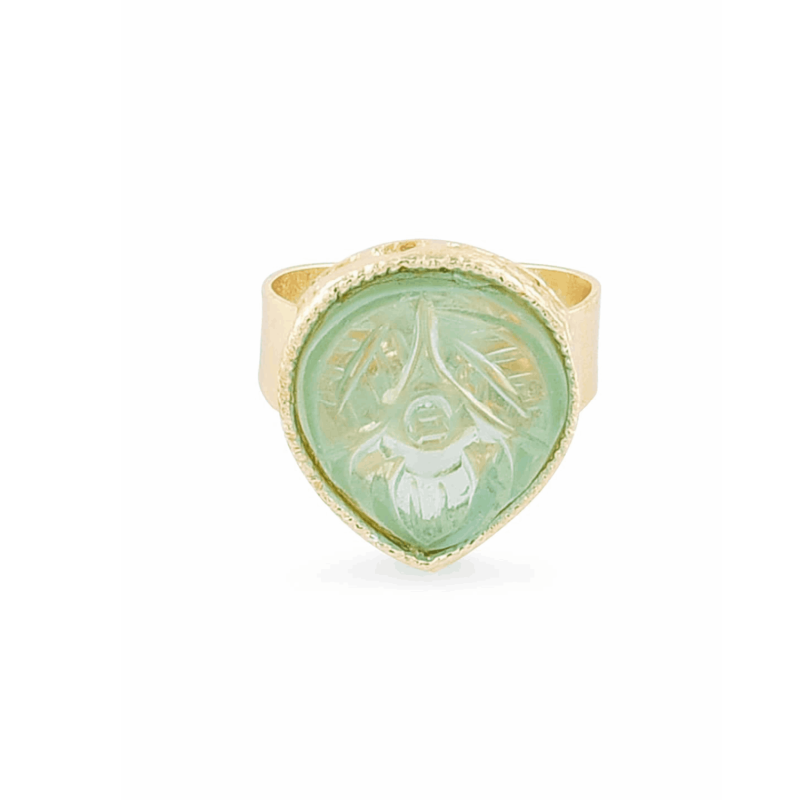 Green & Peach Stones & Beads Kundan Choker Necklace Earring & Ring Set