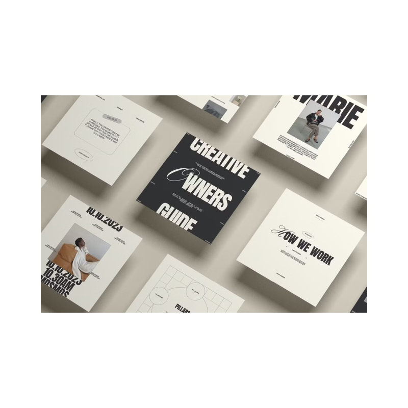 The HAUS Social media kit part II by Studio Standard features a modern aesthetic, perfect for fashion brands, influencers, and design studios. The kit eliminates the need to spend time formatting and designing your social media feed. Simply replace the placeholder text with your own copy and you're ready to go! The square format is ideal for Instagram or blog posts too!.