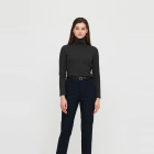 Women Black Solid Turtle Neck T-shirt